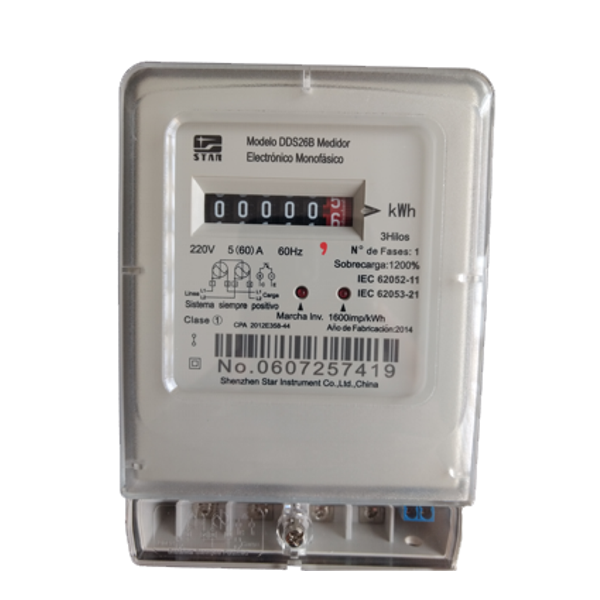 El Medidor Monofásico Homologado Star es un equipo confiable para la medición del consumo eléctrico, garantizando una lectura precisa y transparente.